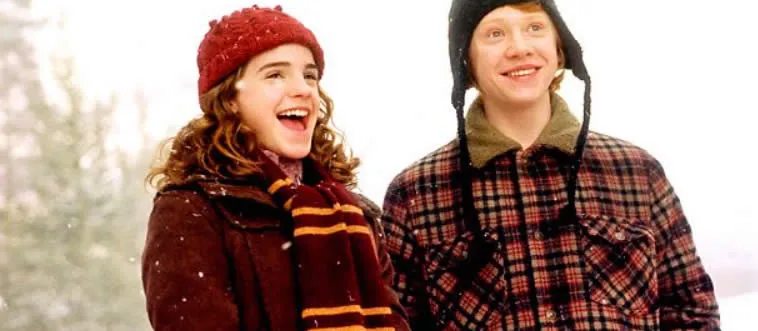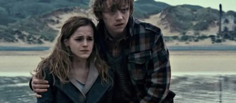 In which book does Hermione first kiss Ron?